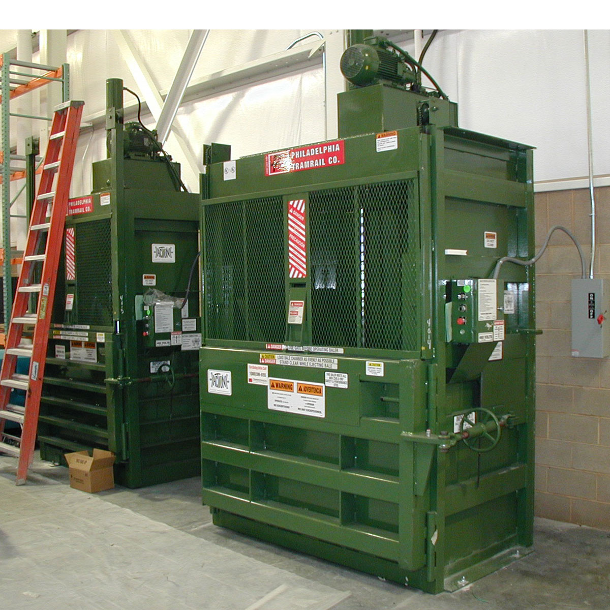 Vertical balers are designed to compact recyclables like cardboard or plastics into bales